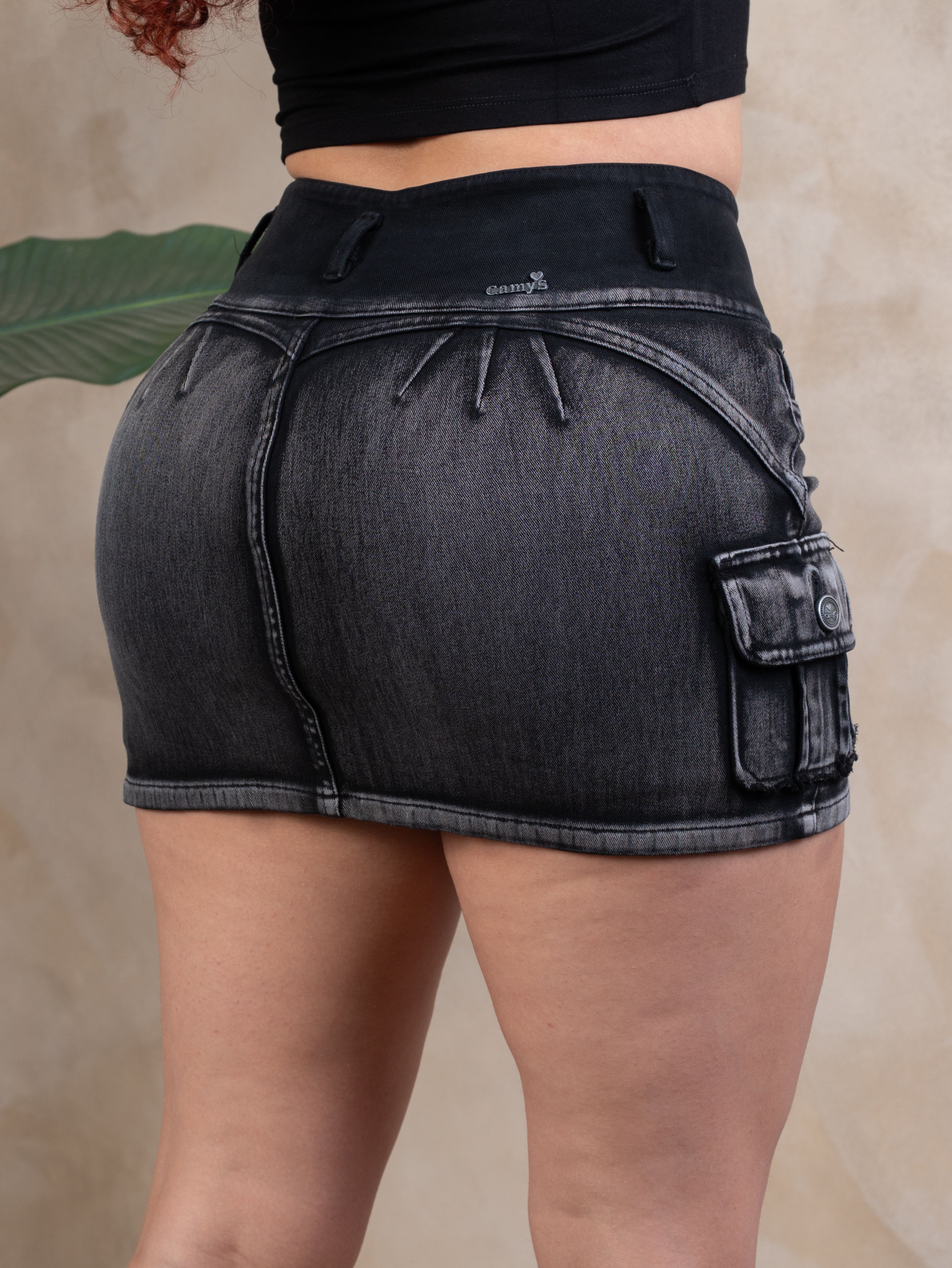 Falda Cargo plomo trapeado de 3 botones hasta la cintura, hecho con material french terry, cuenta con pretina anatómica, tiene corte corazón con tres pinzas que hacen lucir tu figura resaltando esas curvas.